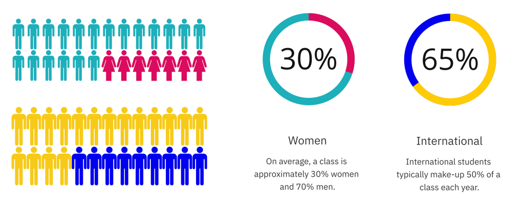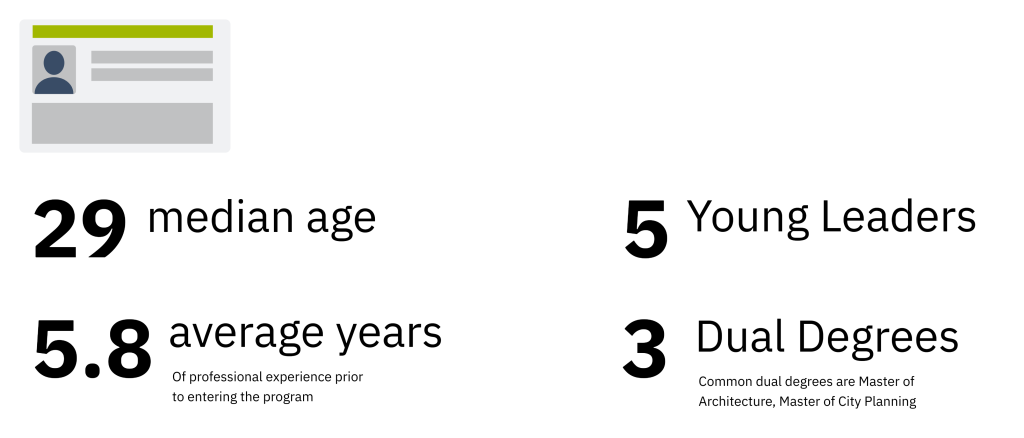 In addition to the required bachelors, over half of the class holds advanced degrees, including one PhD.